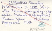CZARNIECKI Stanisław MAŁKOWSKI, S. ; 1958 Stanisław Staszic jako geolog i jego epoka. Przewodnik po wystawie Muzeum Ziemi.