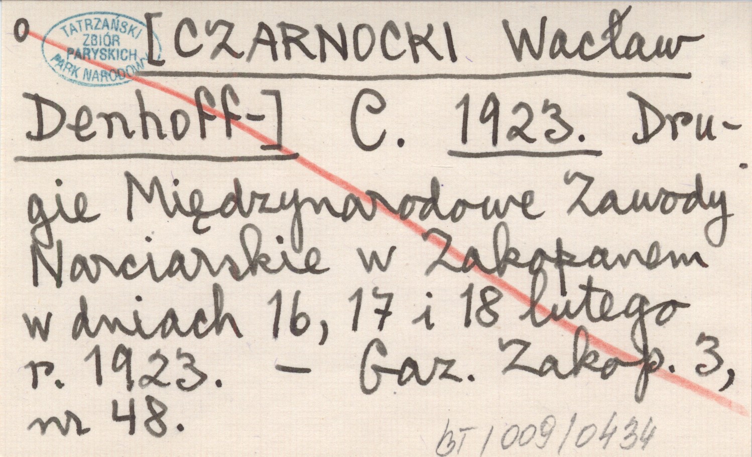 C. [CZARNOCKI Wacław Denhoff-] 1923 Drugie Międzynarodowe Zawody Narciarskie w Zakopanem w dniach 16, 17 i 18 lutego r. 1923.