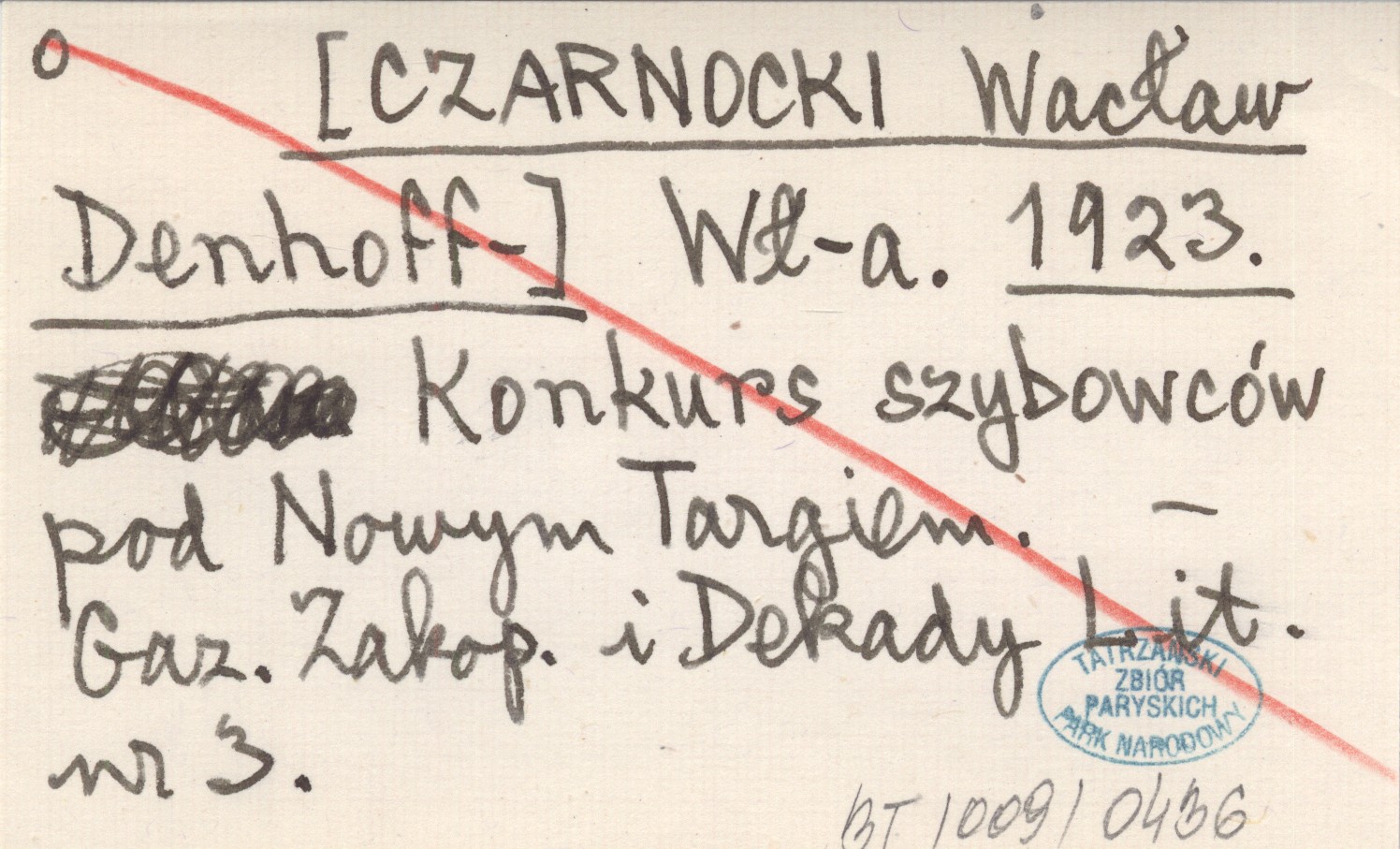 Wł-a. [CZARNOCKI Wacław Denhoff-] 1923 Konkurs szybowców pod Nowym Targiem.
