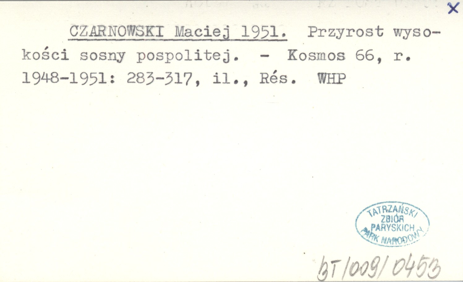 CZARNOWSKI Maciej 1951 Przyrost wysokości sosny pospolitej.