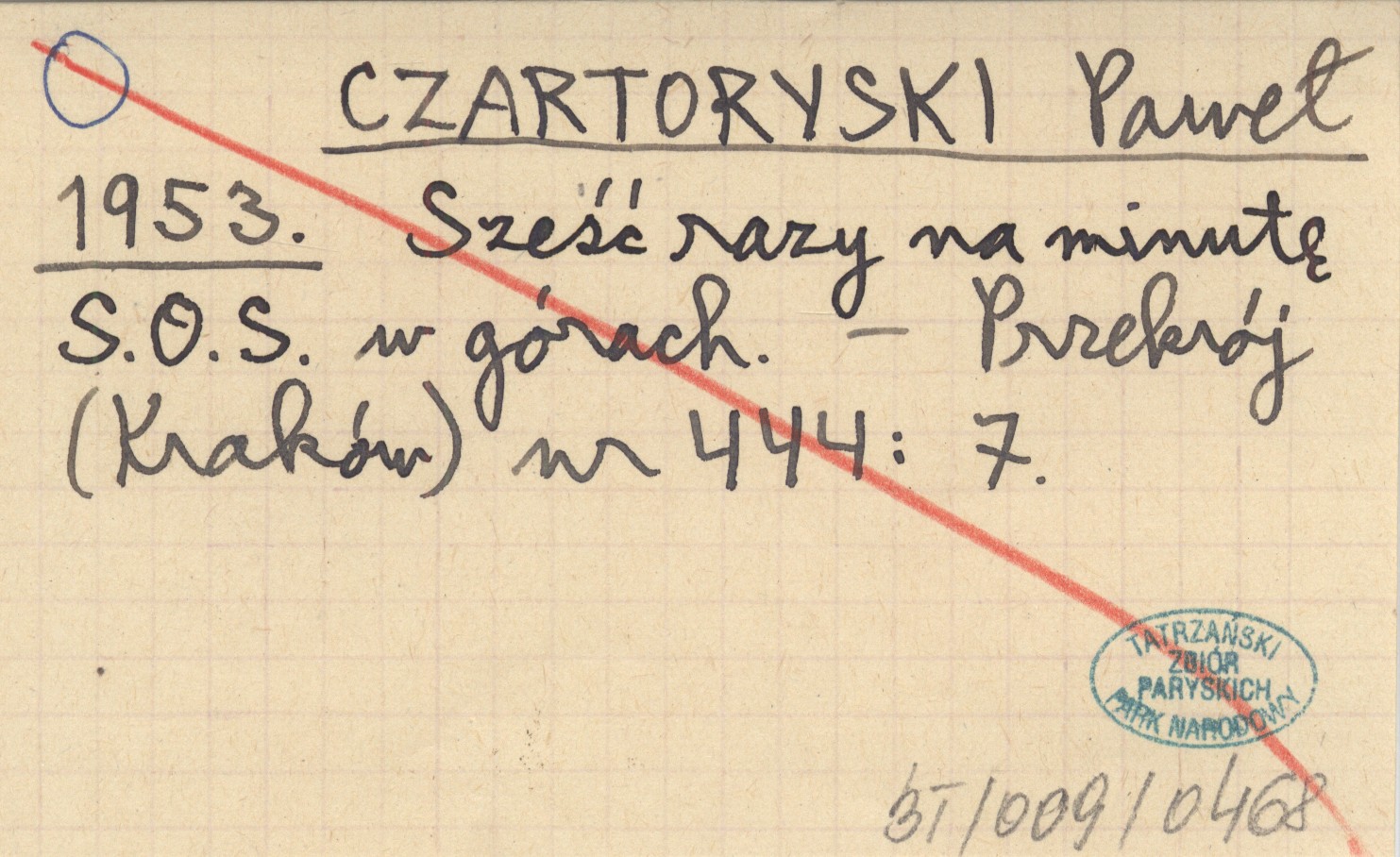 CZARTORYSKI Paweł 1953 Sześć razy na minutę S.O.S. w górach.