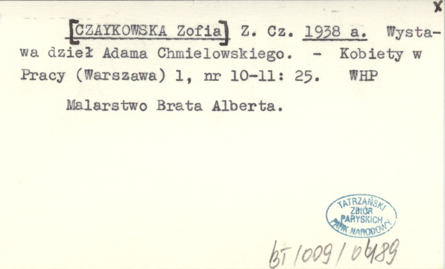 Z. Cz. [CZAYKOWSKA Zofia] 1938 a Wystawa dzieł Adama Chmielowskiego.