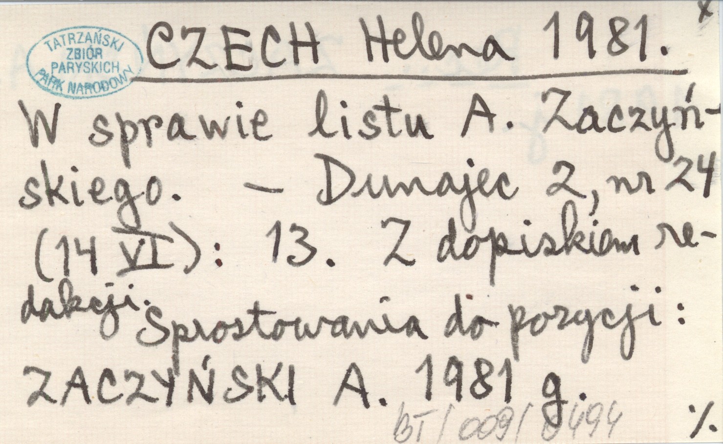 CZECH Helena 1981 W sprawie listu A. Zaczyńskiego.