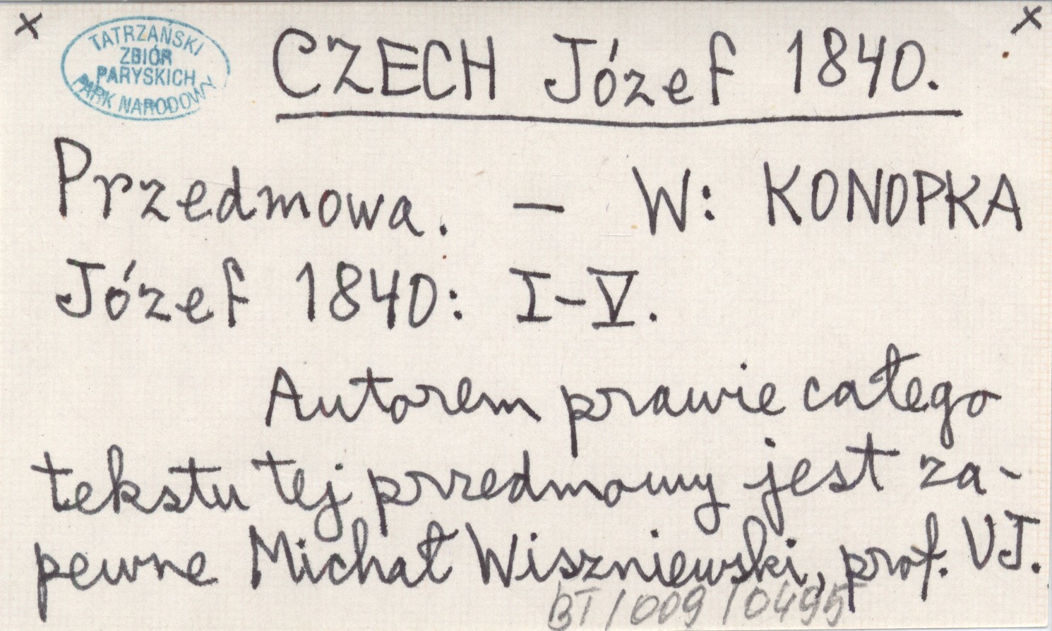 KONOPKA Józef 1840: I-V. , Autorem prawie całego tekstu tej przedmowy jest zapewne Michał Wiszniewski, prof. UJ.
