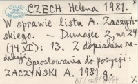 CZECH Helena 1981 W sprawie listu A. Zaczyńskiego.