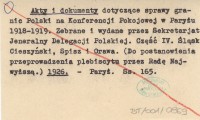 Akty i dokumenty dotyczące sprawy granic Polski na Konferencji Pokojowej w Paryżu 1918-1919. Zebrane i wydane przez Sekretarjat Jeneralny Delegacji Polskiej. Część IV. Śląsk Cieszyński, Spisz i Orawa. (Do postanowienia przeprowadzenia plebiscytu przez Radę Najwyższą.) 1926