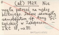 (al) 1927 Nie mogła patrzeć na nędzę bliźniego. Dalsze szczegóły samobójstwa śp. Anny Giżyńskiej w Zakopanem.