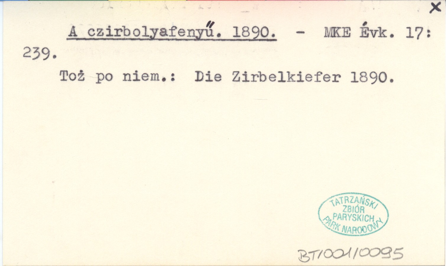 Magyarországi Kárpátegyesület Évkönyve, 17: 239. Toż po niem. Die Zirbelkiefer 1890.