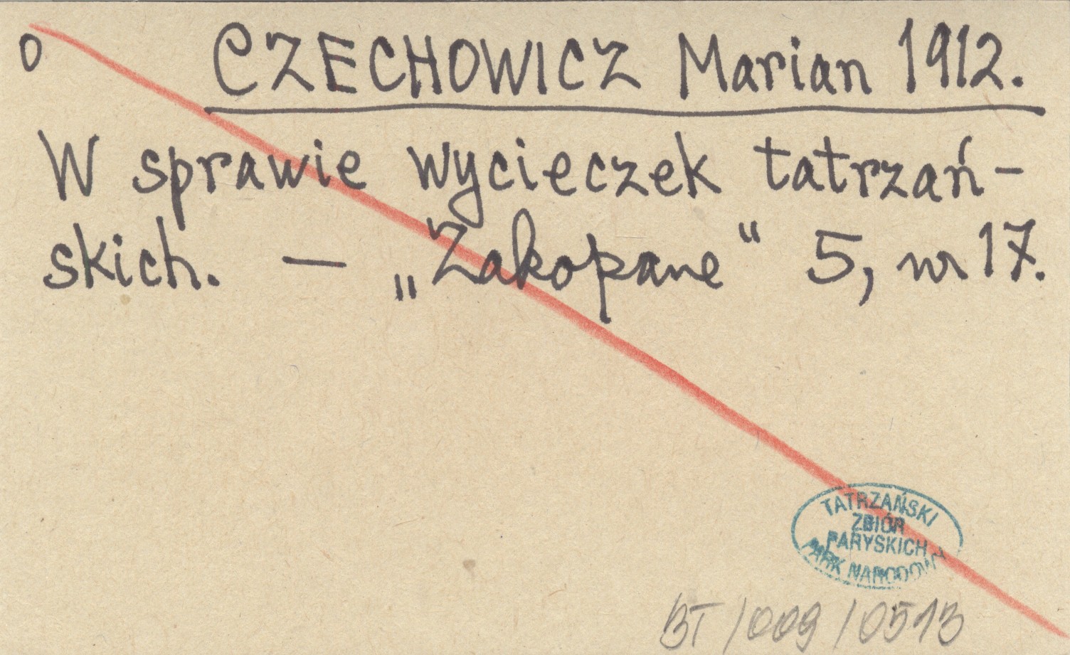 CZECHOWICZ Marian 1912 W sprawie wycieczek tatrzańskich.
