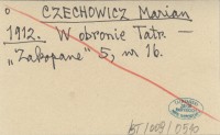 CZECHOWICZ Marian 1912 W sprawie wycieczek tatrzańskich.
