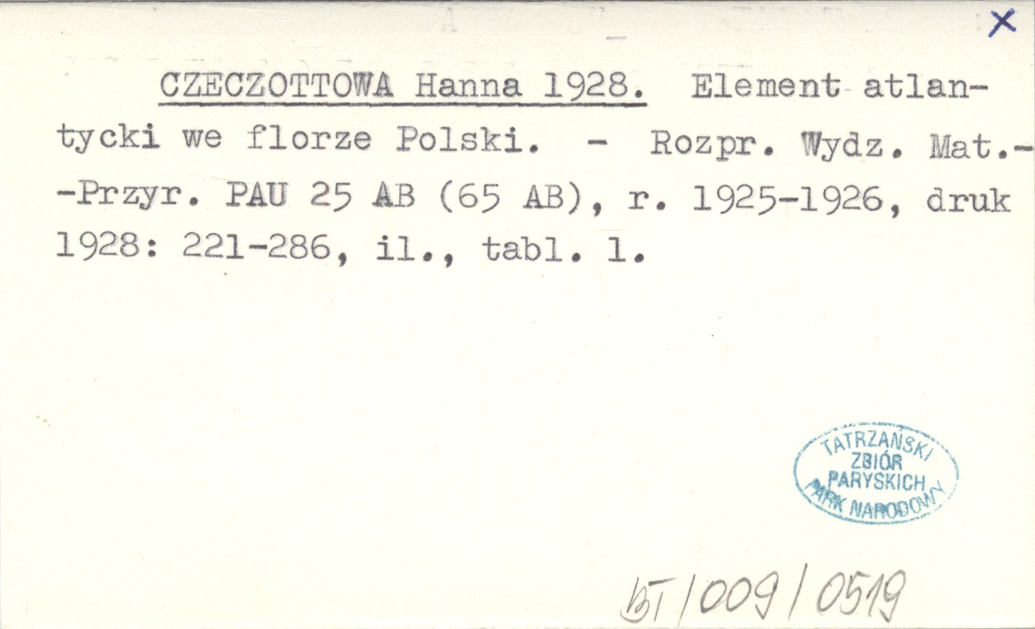 CZECZOTTOWA Hanna 1928 Element atlantycki we florze Polski.