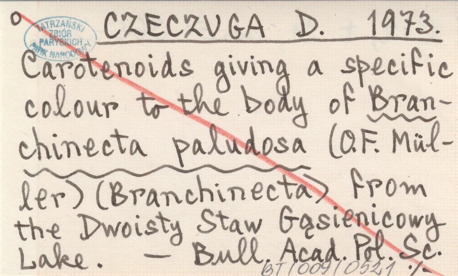 CZECZUGA D. 1973 Carotenoids giving a specific colour to the body of Branchinecta paludosa (O. F. Müller)(Branchinecta)from the Dwoisty Staw Gąsienicowy Lake.