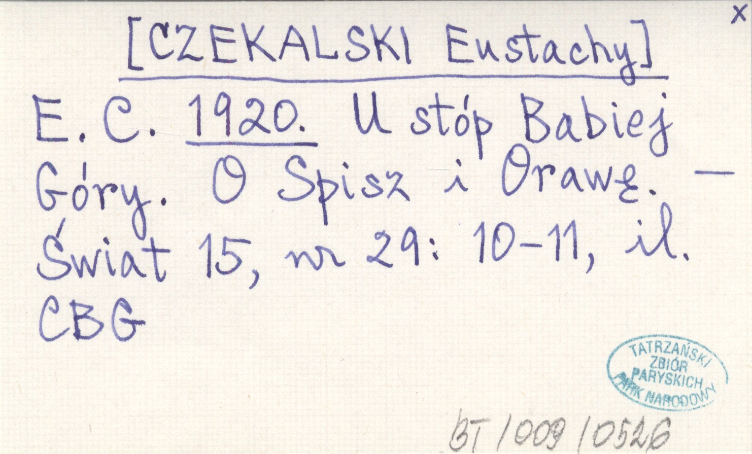 E. C. [CZEKALSKI Eustachy] 1920 U stóp Babiej Góry. O Spisz i Orawę.