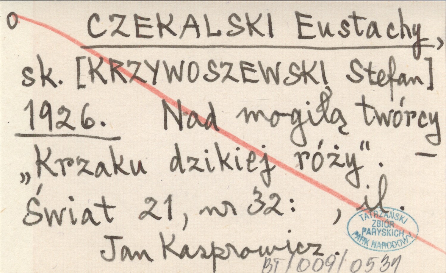 CZEKALSKI Eustachy [KRZYWOSZESKI, Stefan sk.] ; 1926 Nad mogiłą twórcy "Krzaku dzikiej róży".