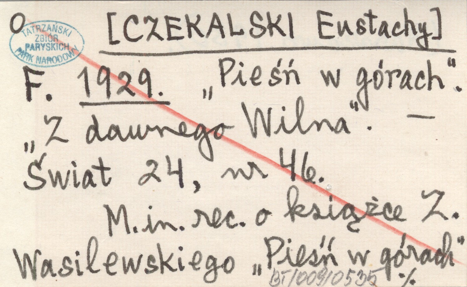 F. [CZEKALSKI Eustachy] 1929 "Pieśń w górach". "Z dawnego Wilna".
