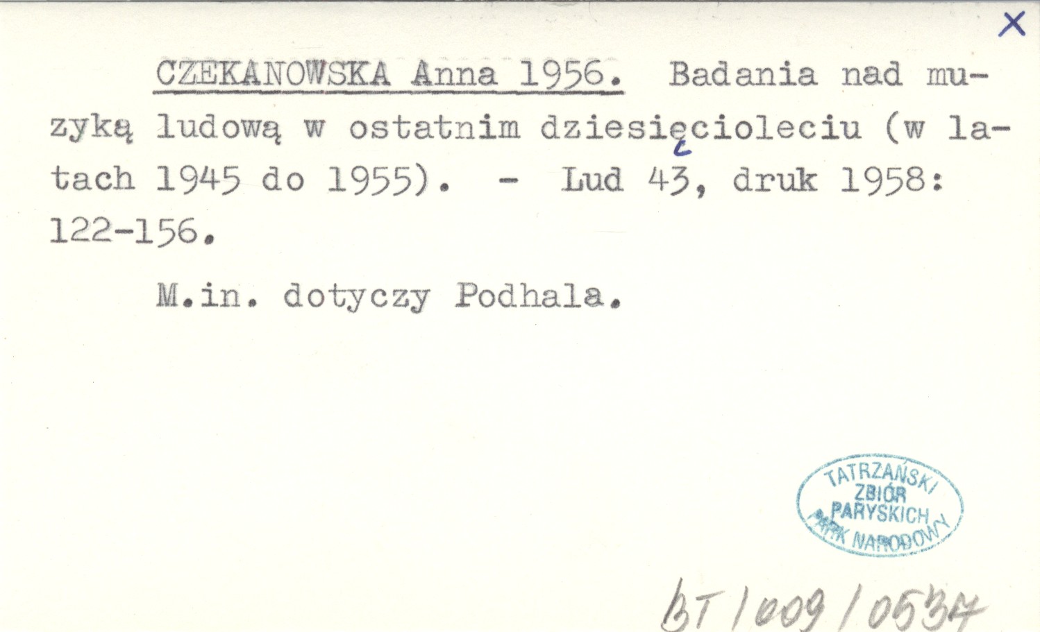 CZEKANOWSKA Anna 1956 Badania nad muzyką ludową w ostatnim dziesięcioleciu (w latach 1945 do 1955).