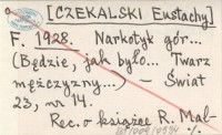 F. [CZEKALSKI Eustachy] 1928 Narkotyk gór... (Będzie, jak było... Twarz mężczyzny...).