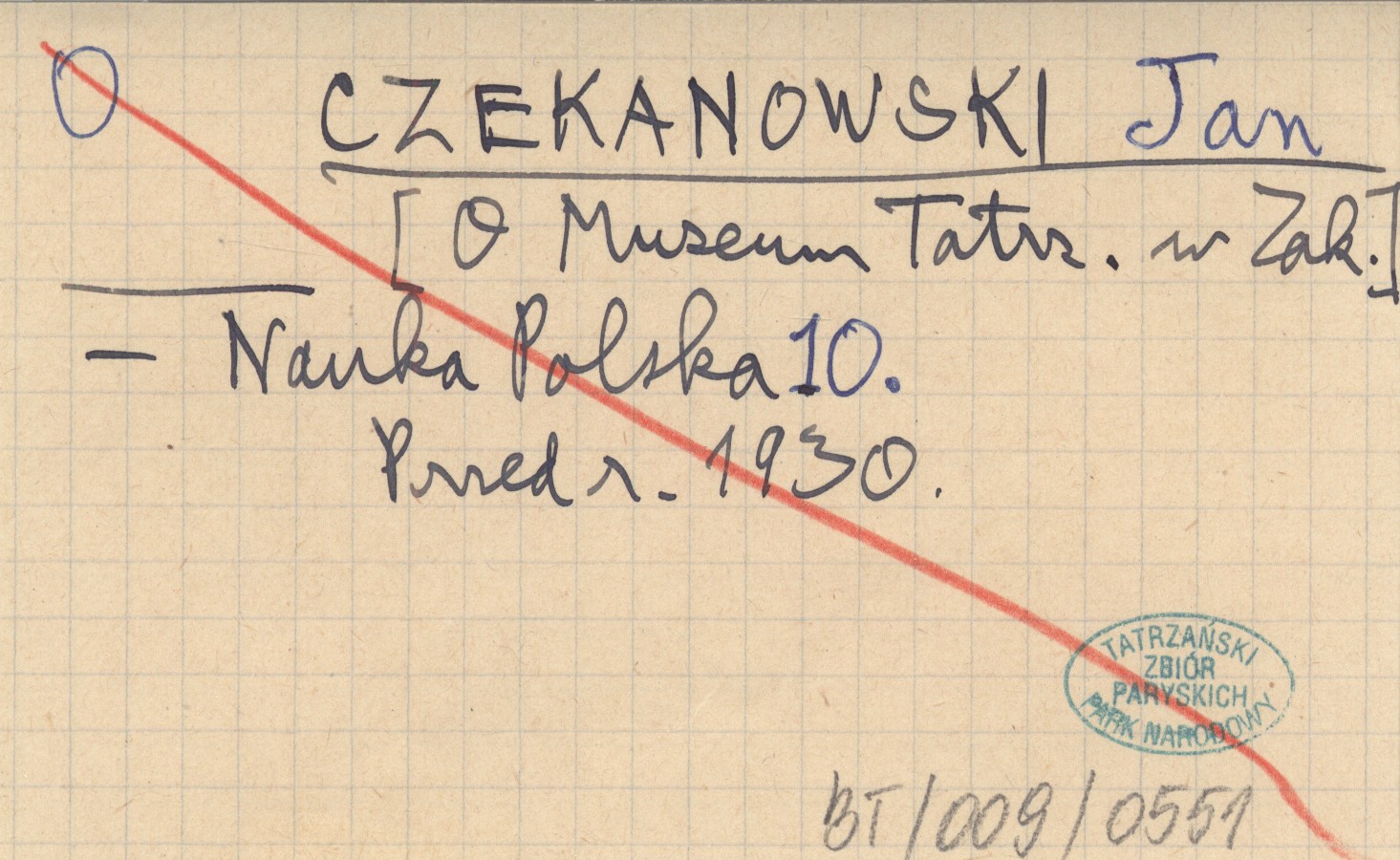 CZEKANOWSKI Jan [O Muzeum Tatrzańskim w Zakopanem].