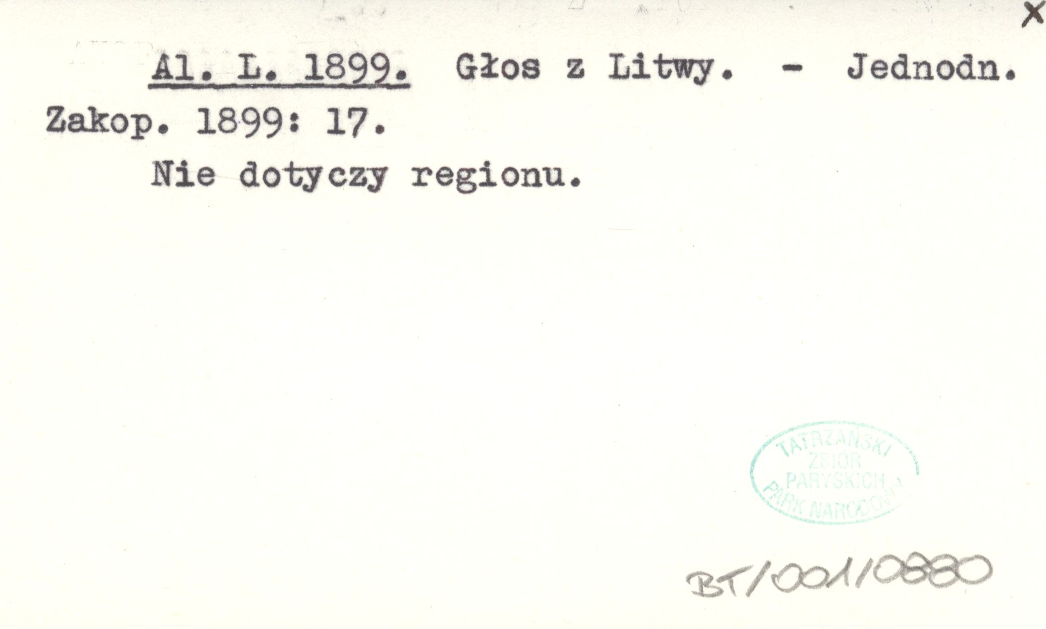 Jednodniówka Zakopiańska, S. 17. Nie dotyczy regionu.