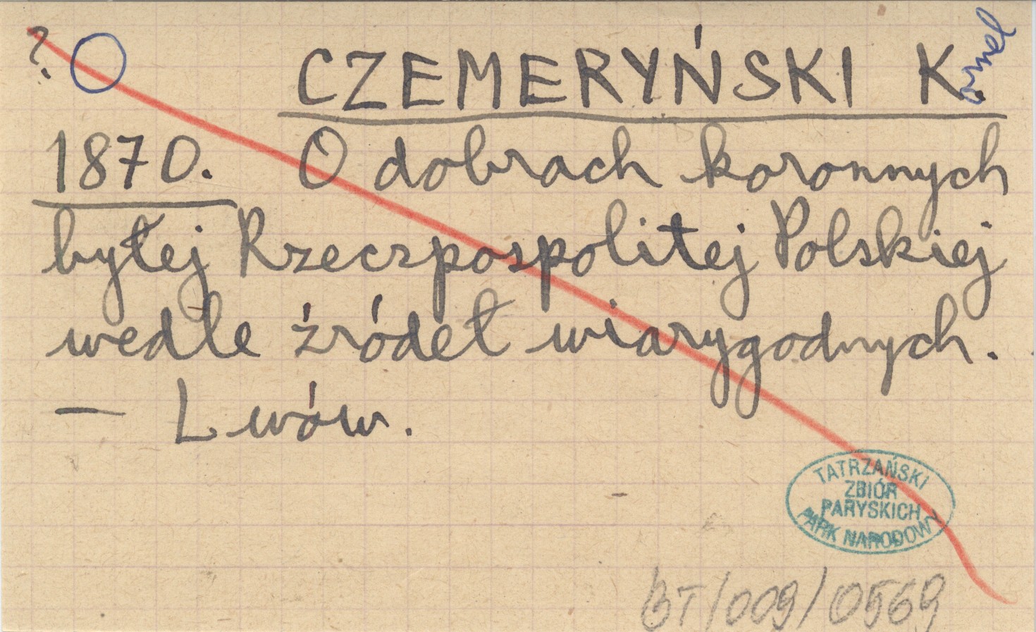 CZEMERYŃSKI Kornel 1870 O dobrach koronnych byłej Rzeczpospolitej Polskiej wedle źródeł wiarygodnych.