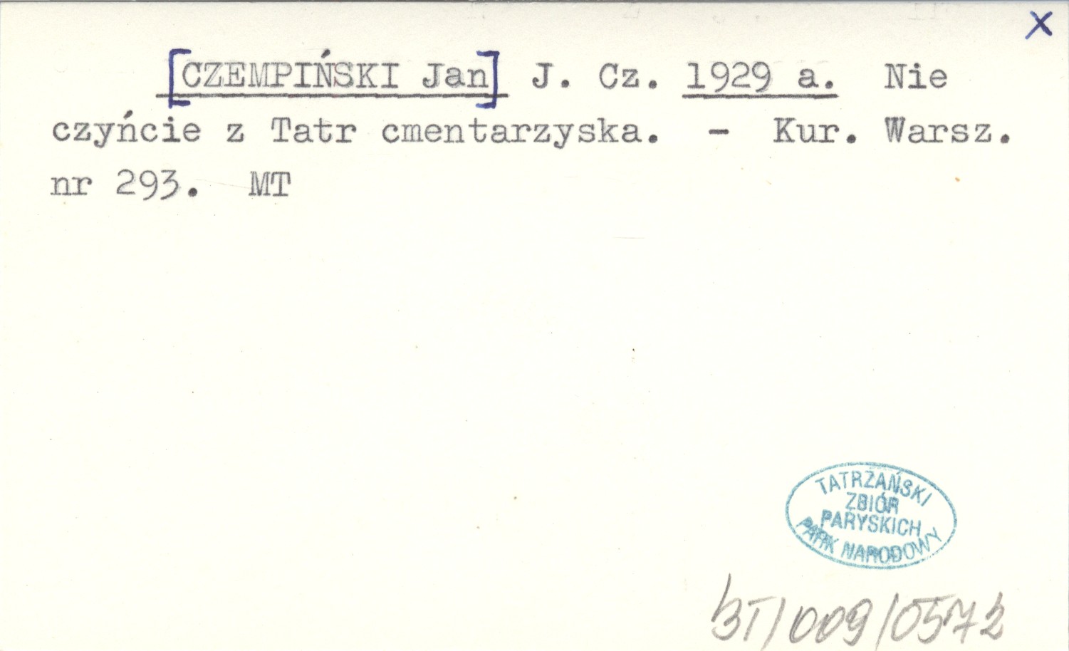 J. Cz. [CZEMPIŃSKI Jan] 1929 a Nie czyńcie z Tatr cmentarzyska.