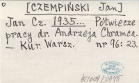 Jan Cz. [CZEMPIŃSKI Jan] 1935... Półwiecze pracy dr. Andrzeja Chramca.
