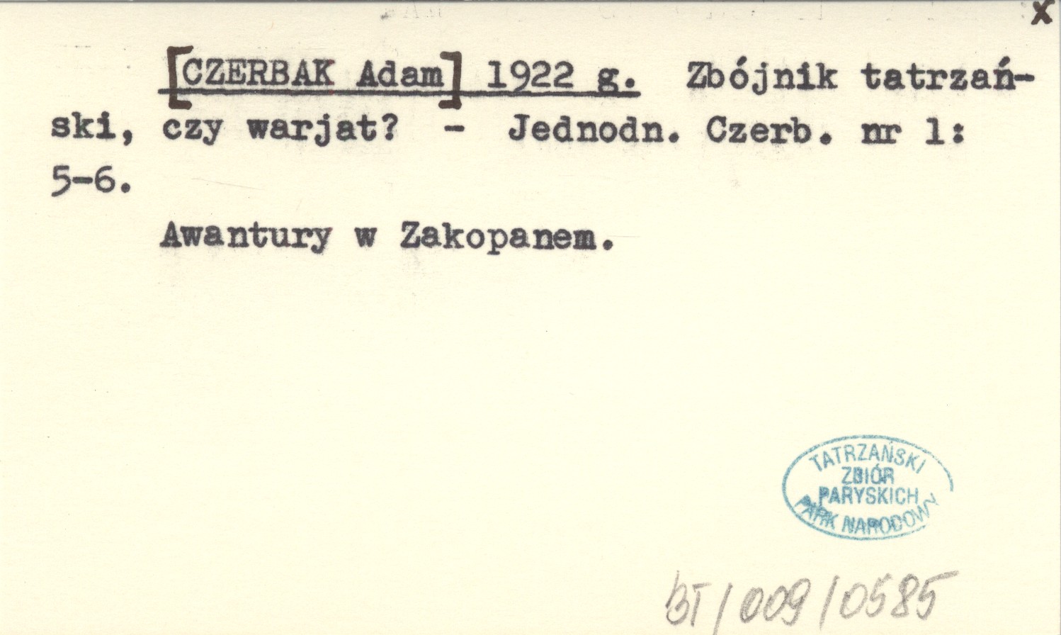 [CZERBAK Adam] 1922 g Zbójnik tatrzański, czy warjat?