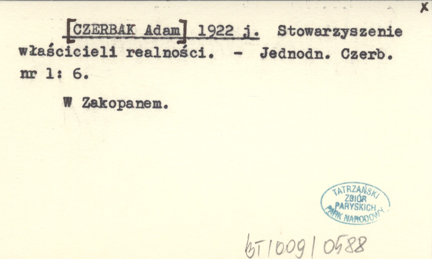 [CZERBAK Adam] 1922 j Stowarzyszenie właścicieli realności.