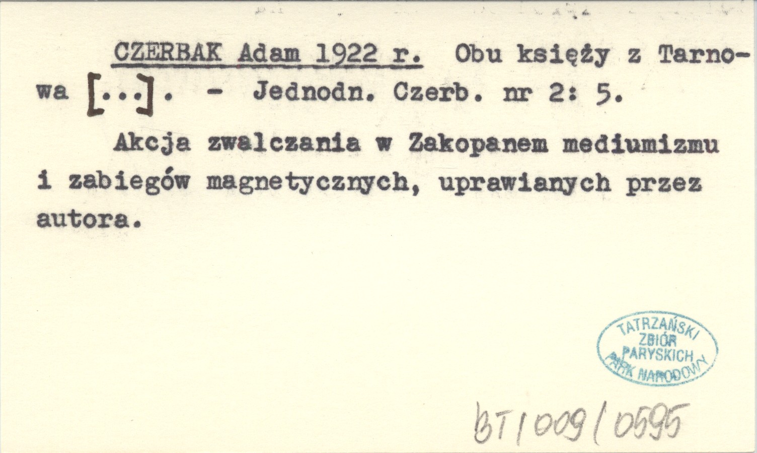 Jednodniówka Czerbaka, Nr 2: 5. Akcja zwalczania w Zakopanem mediumizmu i zabiegów magnetycznych, uprawianych przez autora.