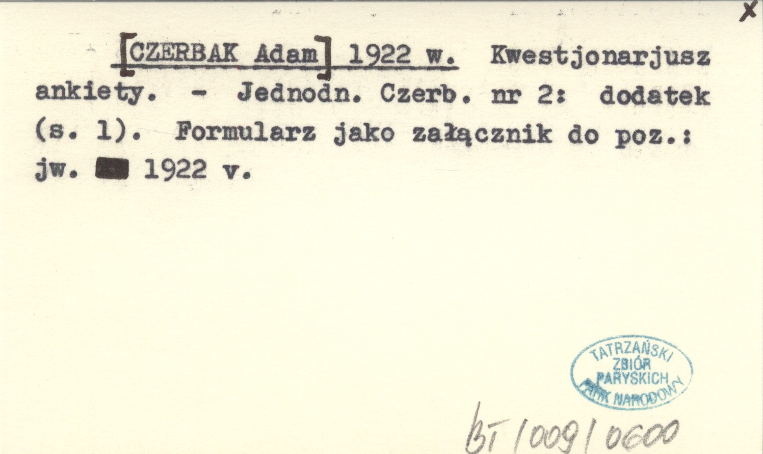 Jednodniówka Czerbaka, Nr 2: dod. (s. 1). Formularz jako załącznik do poz.: jw. 1922 v.