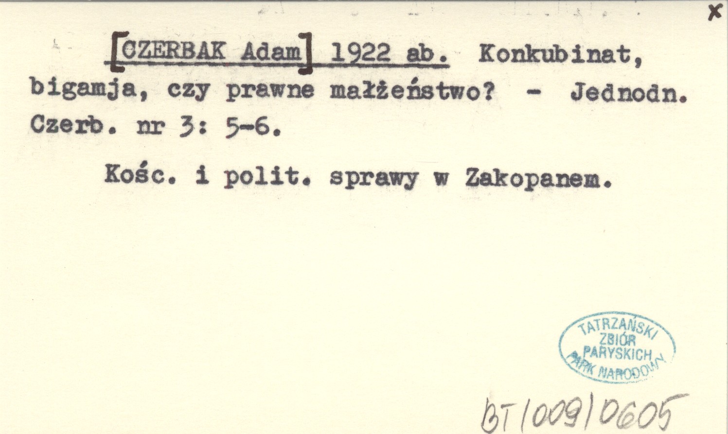 [CZERBAK Adam] 1922 ab Konkubinat, bigamja, czy prawne małżeństwo?