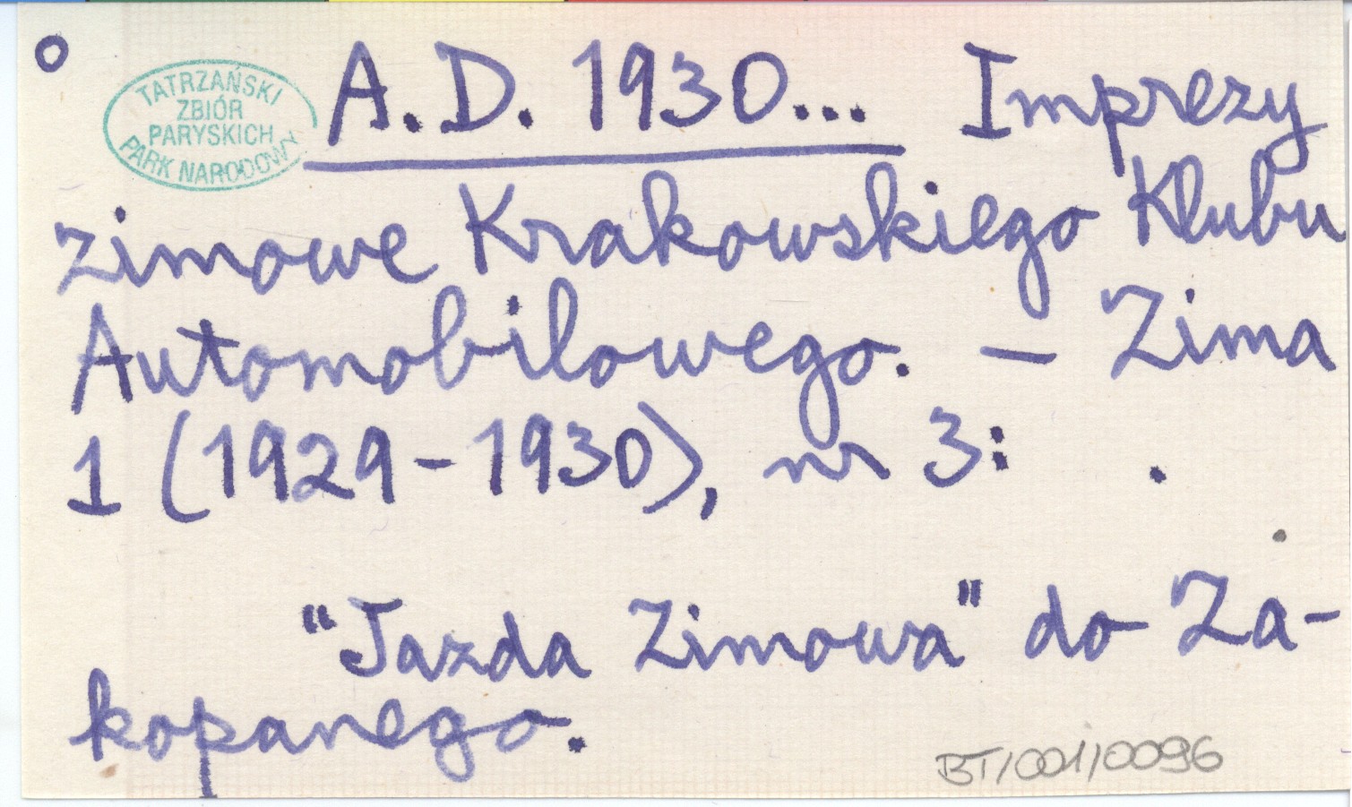 Projekt Digitalizacja fiszek z Bibliografią Tatr i Podtatrza Witolda Henryka Paryskiego jest finansowany ze środków Ministra Kultury i Dziedzictwa Narodowego oraz Tatrzańskiego Parku Narodowego.