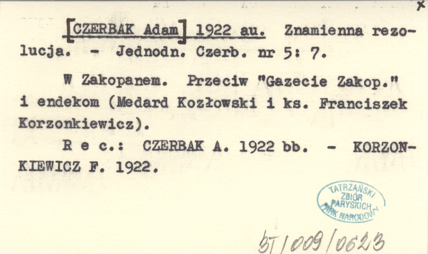 Jednodniówka Czerbaka, Nr 5: 7. W Zakopanem. Przeciw "Gazecie Zakopiańskiej" i endekom (Medard Kozłowski i ks. Franciszek Korzonkiewicz). REC: CZERBAK A. 1922 bb. KORZONKIEWICZ F. 1922.