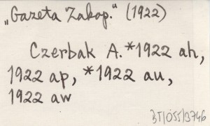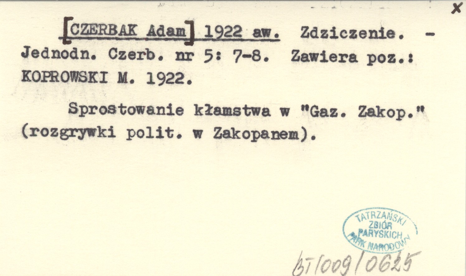 Jednodniówka Czerbaka, Nr 5: 7-8. Sprostowanie kłamstwa w "Gazecie Zakopiańskiej" (rozgrywki polityczne w Zakopanem). Zawiera poz.: KOPROWSKI M. 1922.