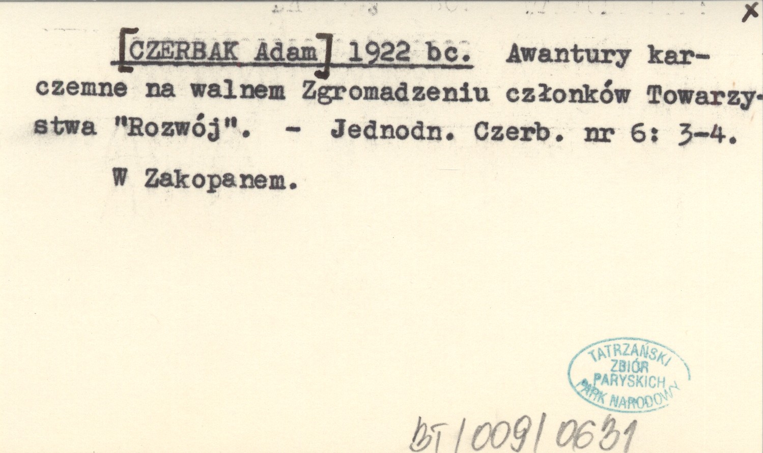 [CZERBAK Adam] 1922 bc Awantury karczemne na walnem Zgromadzeniu członków Towarzystwa "Rozwój".