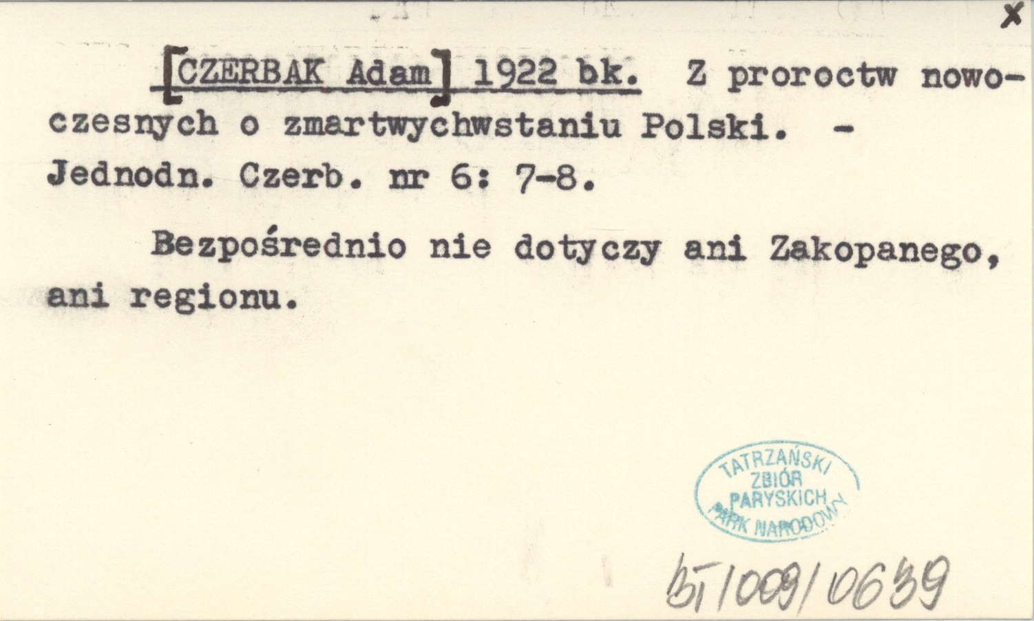 Jednodniówka Czerbaka, Nr 6: 7-8. Bezpośrednio nie dotyczy ani Zakopanego, ani regionu.