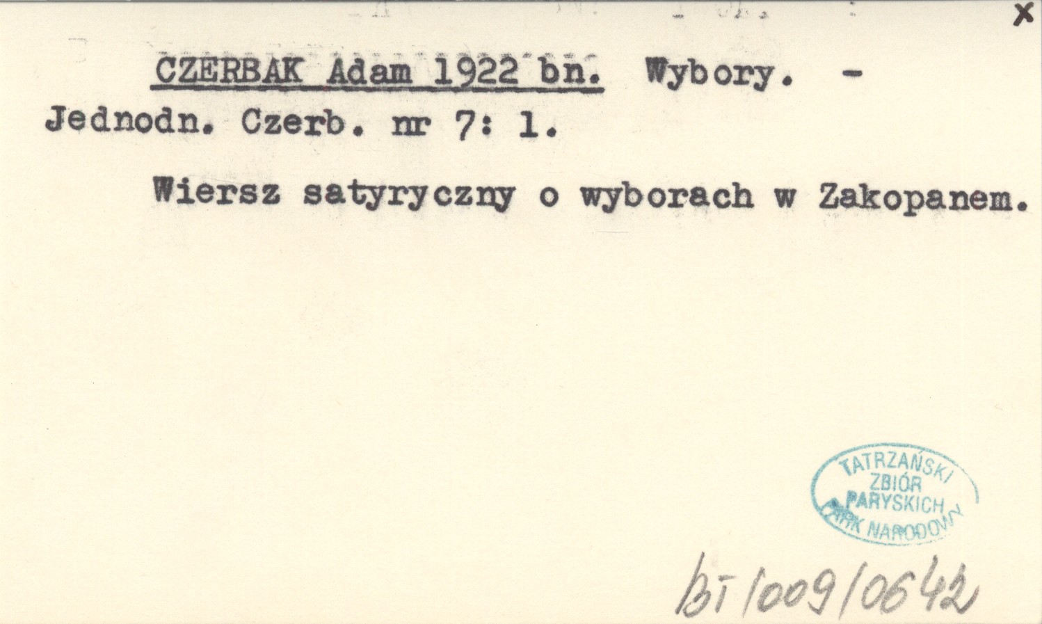 Jednodniówka Czerbaka, Nr 7: 1. Wiersz satyryczny o wyborach w Zakopanem.