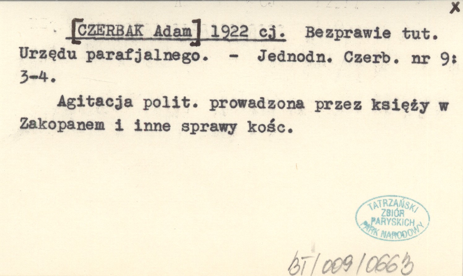 [CZERBAK Adam] 1922 cj Bezprawie tut. Urzędu parafjalnego.