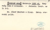 [CZERBAK Adam] RED: CZERBAK, Adam. ; 1922 ci Nowy wróg ludu w sutannie.