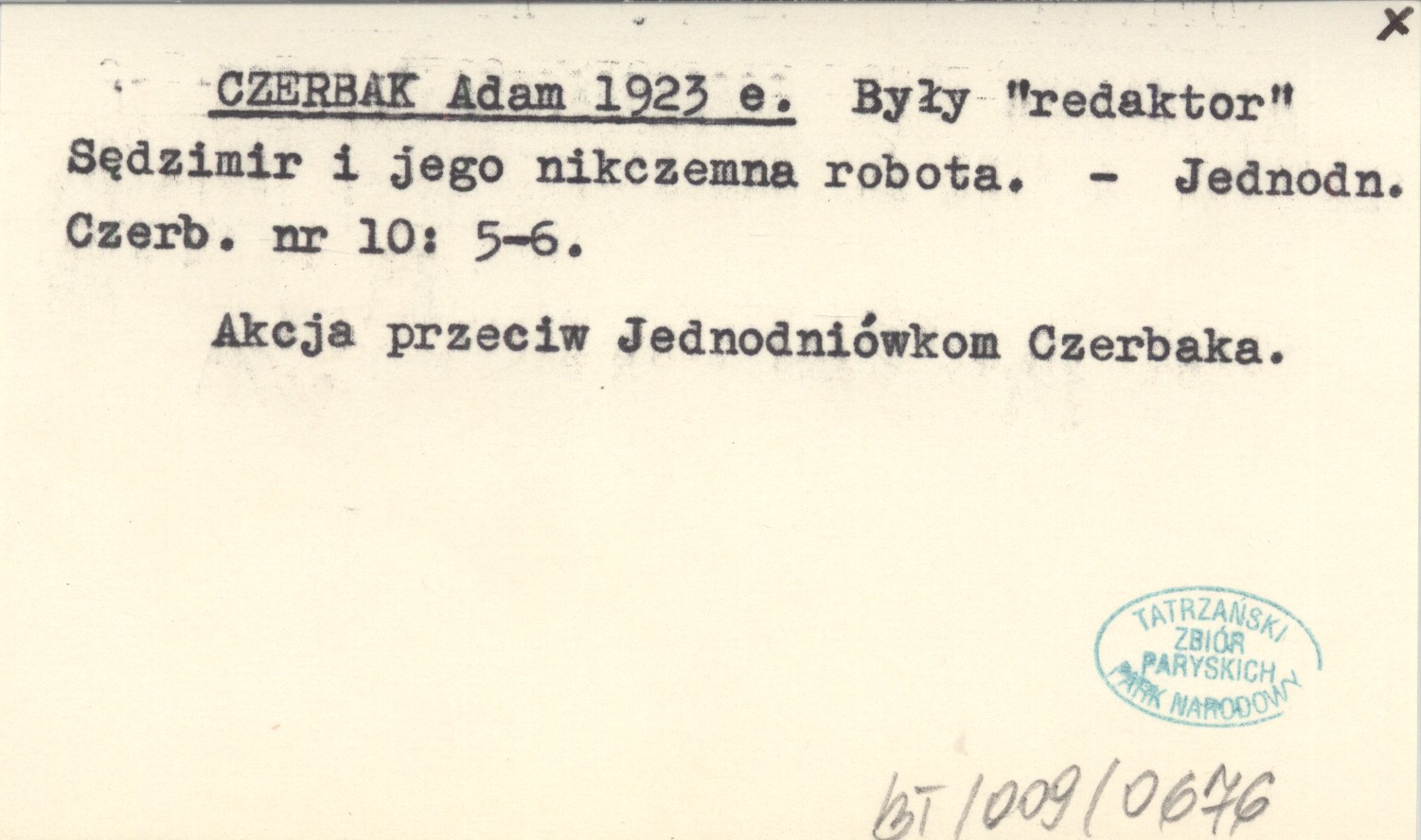 CZERBAK Adam 1923 e Były "redaktor" Sędzimir i jego nikczemna robota.