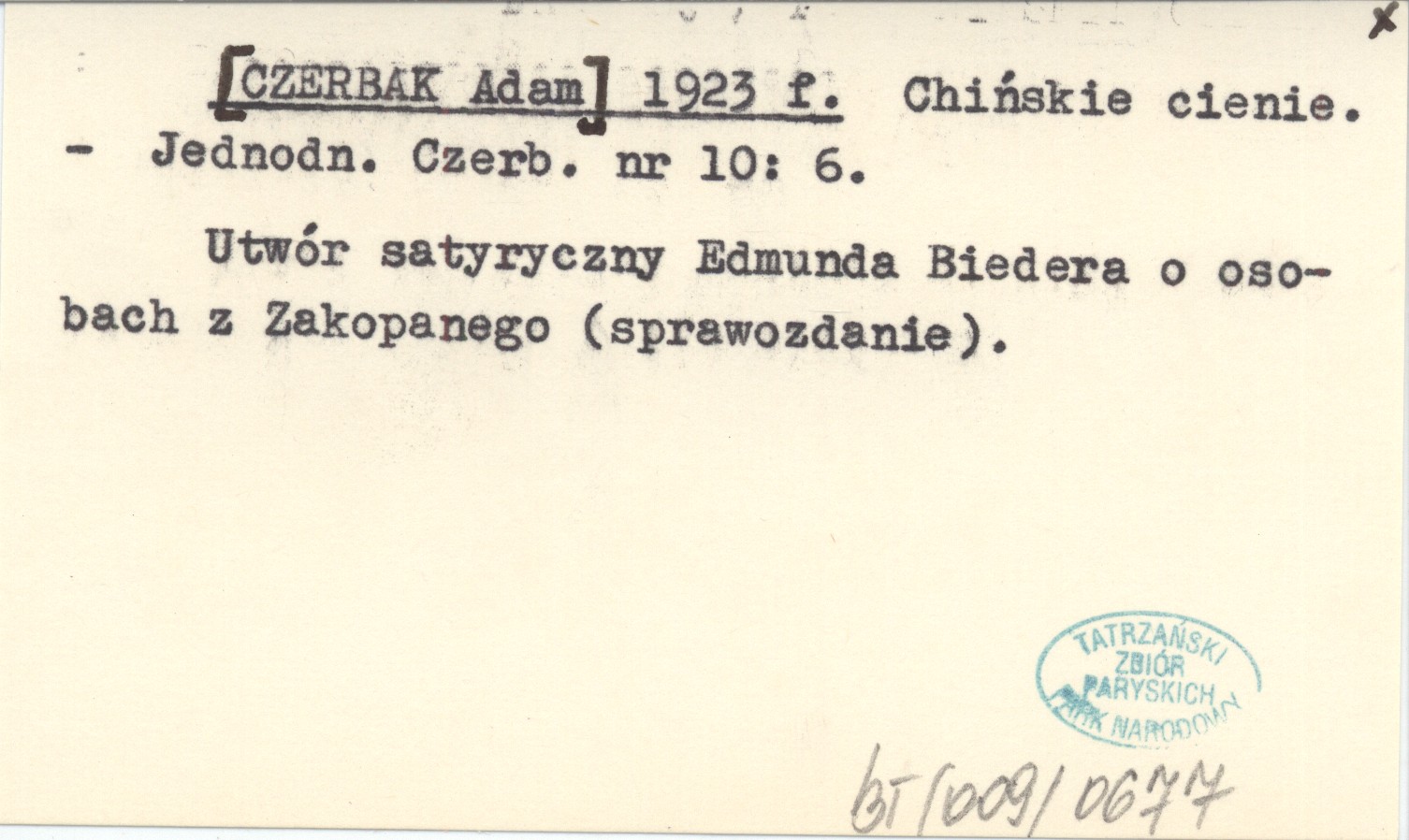 Jednodniówka Czerbaka, Nr 10: 6. Utwór satyryczny Edmunda Biedera o osobach z Zakopanego (sprawozdanie).