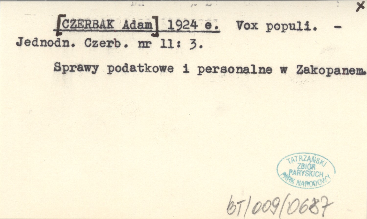 Jednodniówka Czerbaka, Nr 11: 3. Sprawy podatkowe i personalne w Zakopanem.