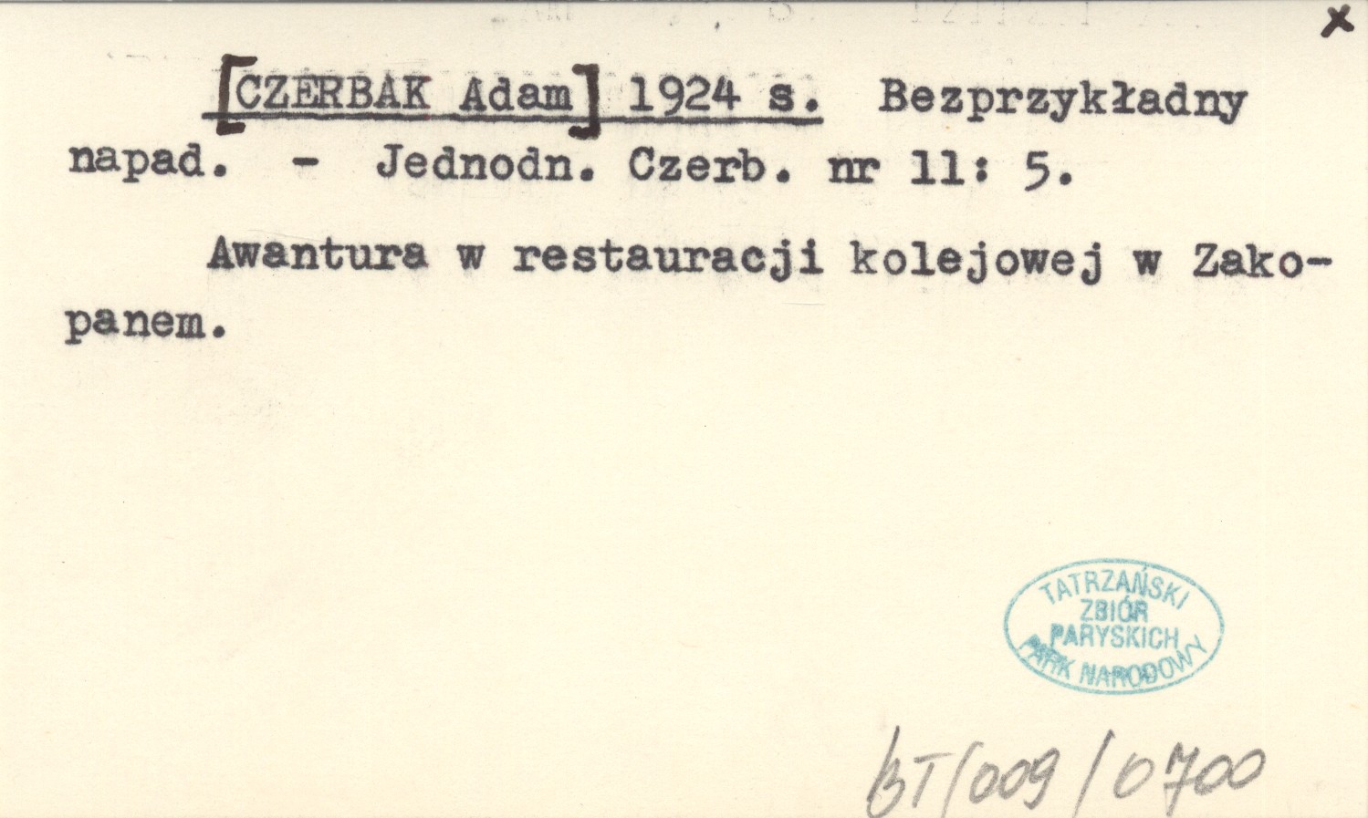 Jednodniówka Czerbaka, Nr 11: 5. Awantura w restauracji kolejowej w Zakopanem.