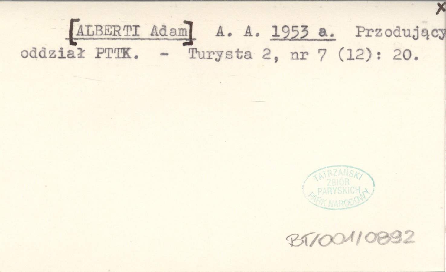 A. A. [ALBERTI Adam] 1953 a Przodujący oddział PTTK.