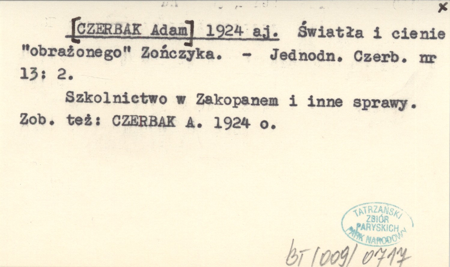 Jednodniówka Czerbaka, Nr 13: 2. Szkolnictwo w Zakopanem i inne sprawy. Zob. też: CZERBAK A. 1924 o.