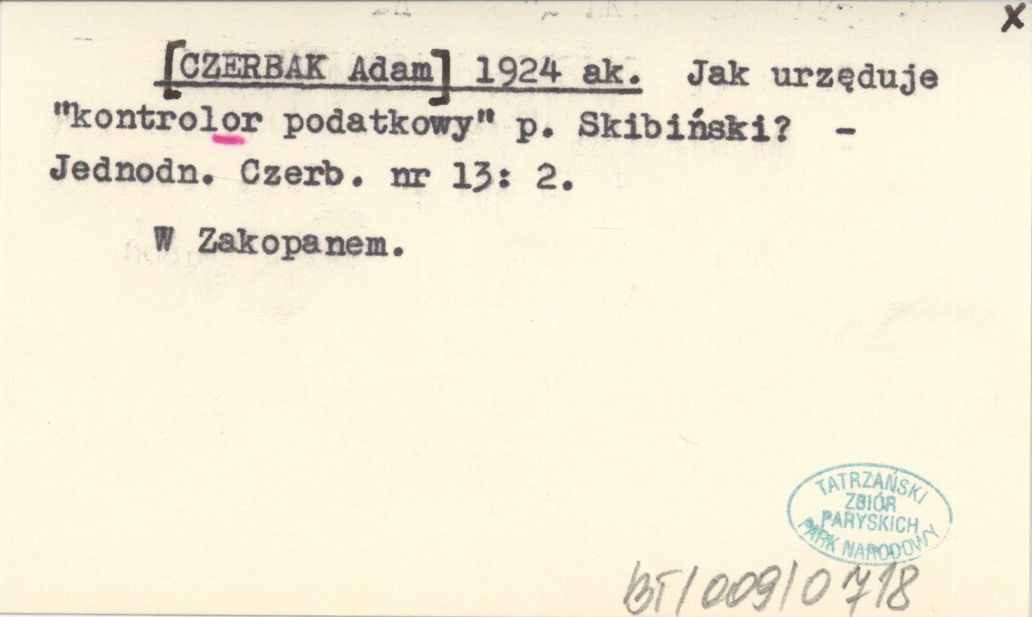 [CZERBAK Adam] 1924 ak Jak urzęduje "kontrolor podatkowy" p. Skibiński?