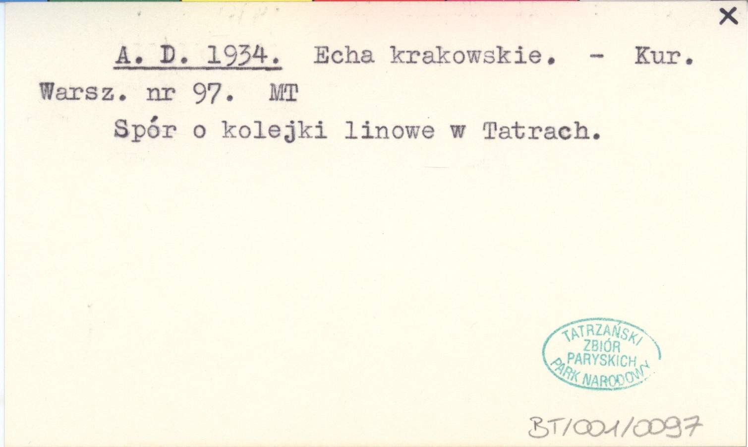 Kurier Warszawski, Nr 97. Spór o kolejki linowe w Tatrach.