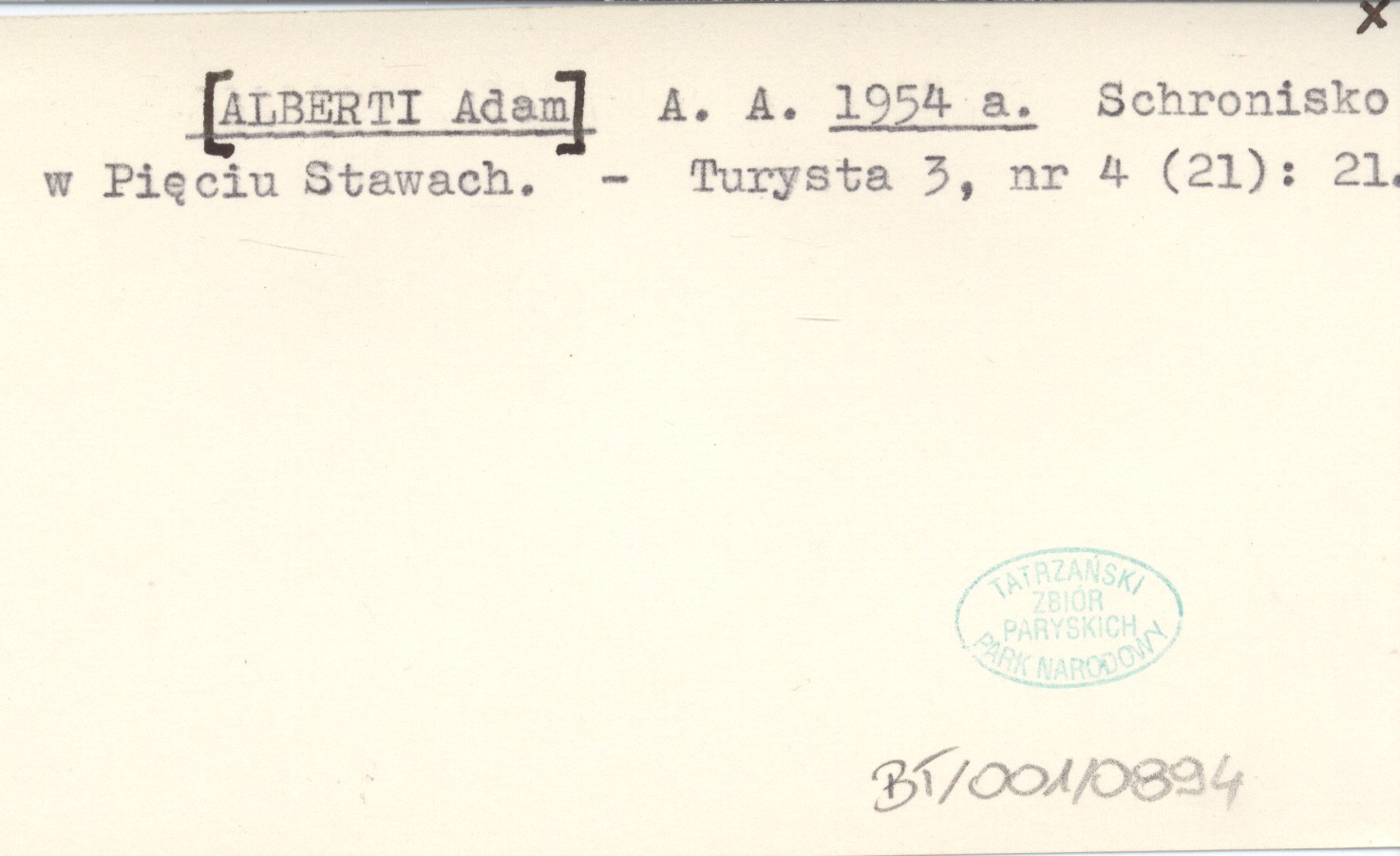 A. A. [ALBERTI Adam] 1954 a Schronisko w Pięciu Stawach.
