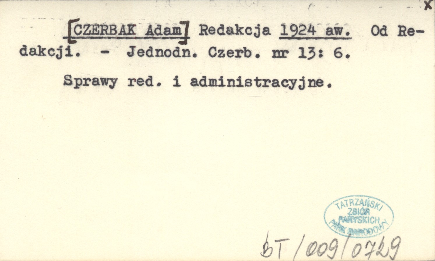 Jednodniówka Czerbaka, Nr 13: 6. Sprawy redakcyjne i administracyjne.