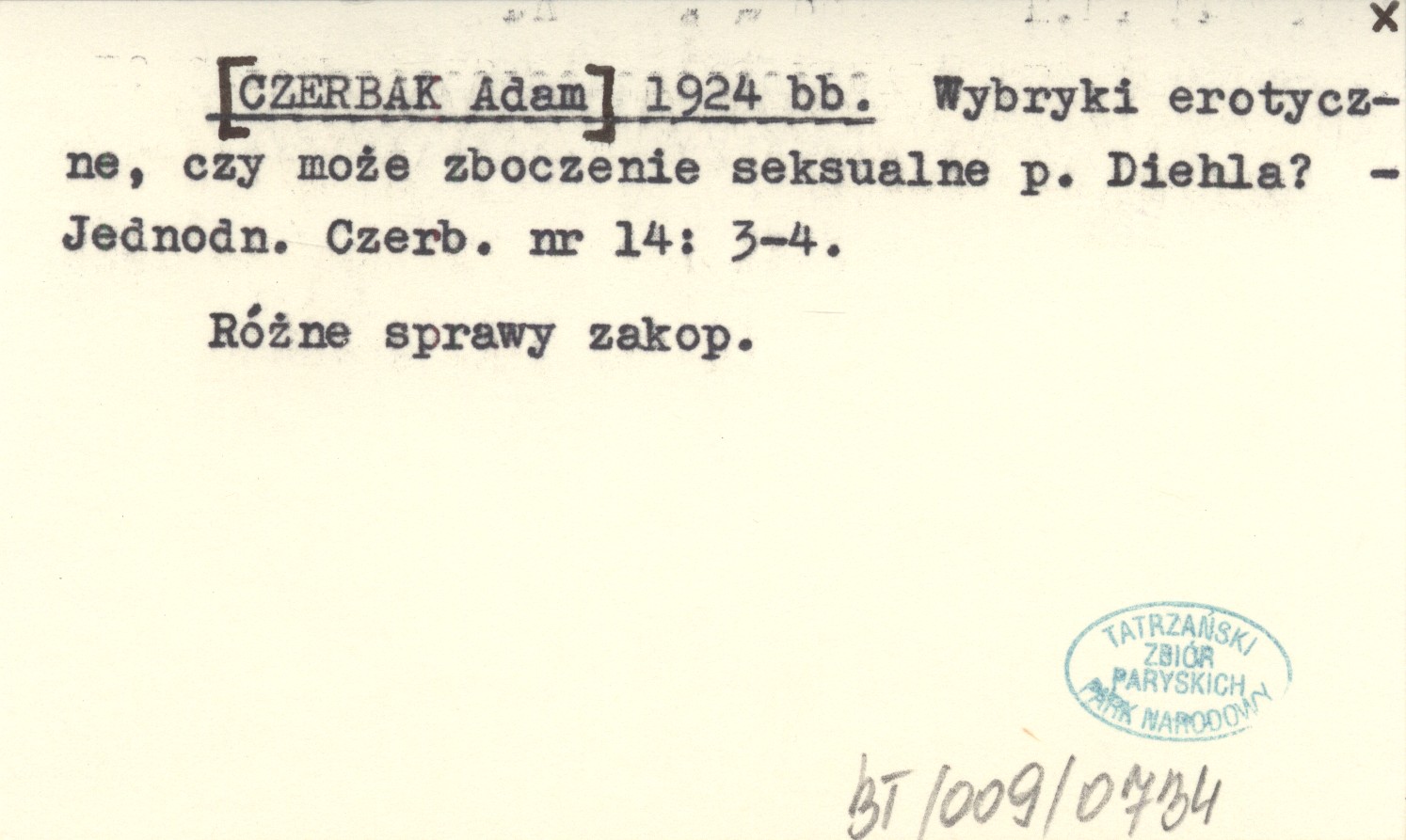 [CZERBAK Adam] 1924 bb Wybryki erotyczne, czy może zboczenie seksualne p. Diehla?